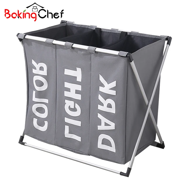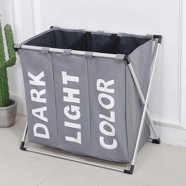 Folding Dirty Clothes Laundry Storage Basket Three Grid Organizer