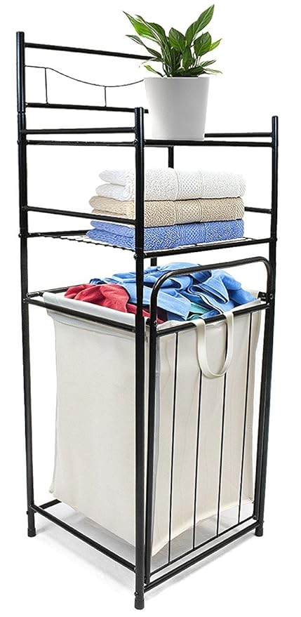 Bathroom Rack With Hamper Laundry Storage Basket Space Saver Shelf