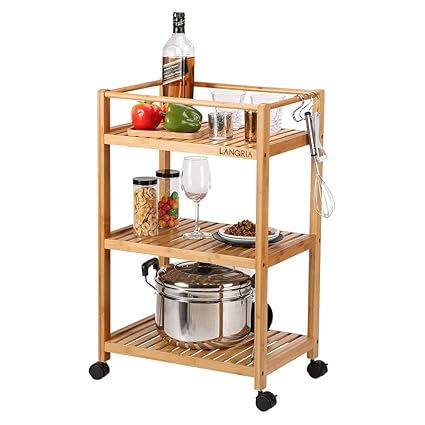 Amazon Com Langria Bamboo All Purpose 3 Tier Rolling Cart With
