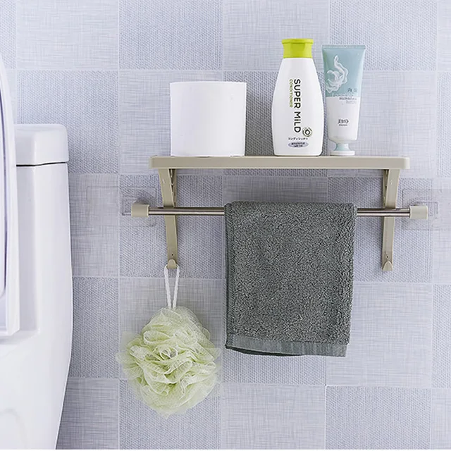 Wall Mounted Towel Rack Bathroom Shelf Organizer Holder Hotel Bath